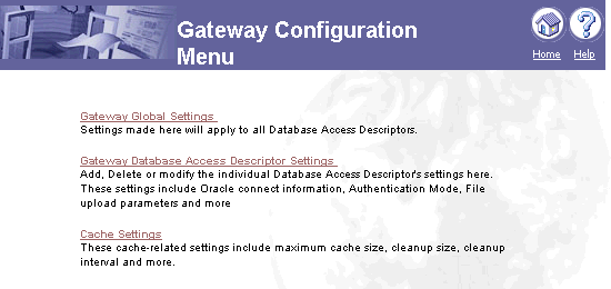 You can also access the Gateway Configuration Menu through Oracle Portal. To do so: